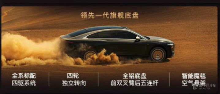 底盘方面,岚图追光L采用前双叉臂式后五连杆式独立悬架的形式,并配备双腔空气悬架和CDC可变阻尼减振器,以及配备后轮独立转向系统,支持蟹行模式。