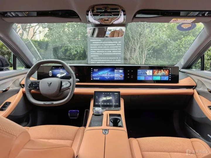 内饰方面,岚图追光L换装了全新的设计,相比岚图追光的一体式大联屏布局更简约,采用16.1英寸尺寸悬浮式中控大屏和全液晶仪表组合,配备三辐式平底方向盘和电子怀挡式换挡,空调出风口采用贯穿式布局,提升车内的视觉宽度。